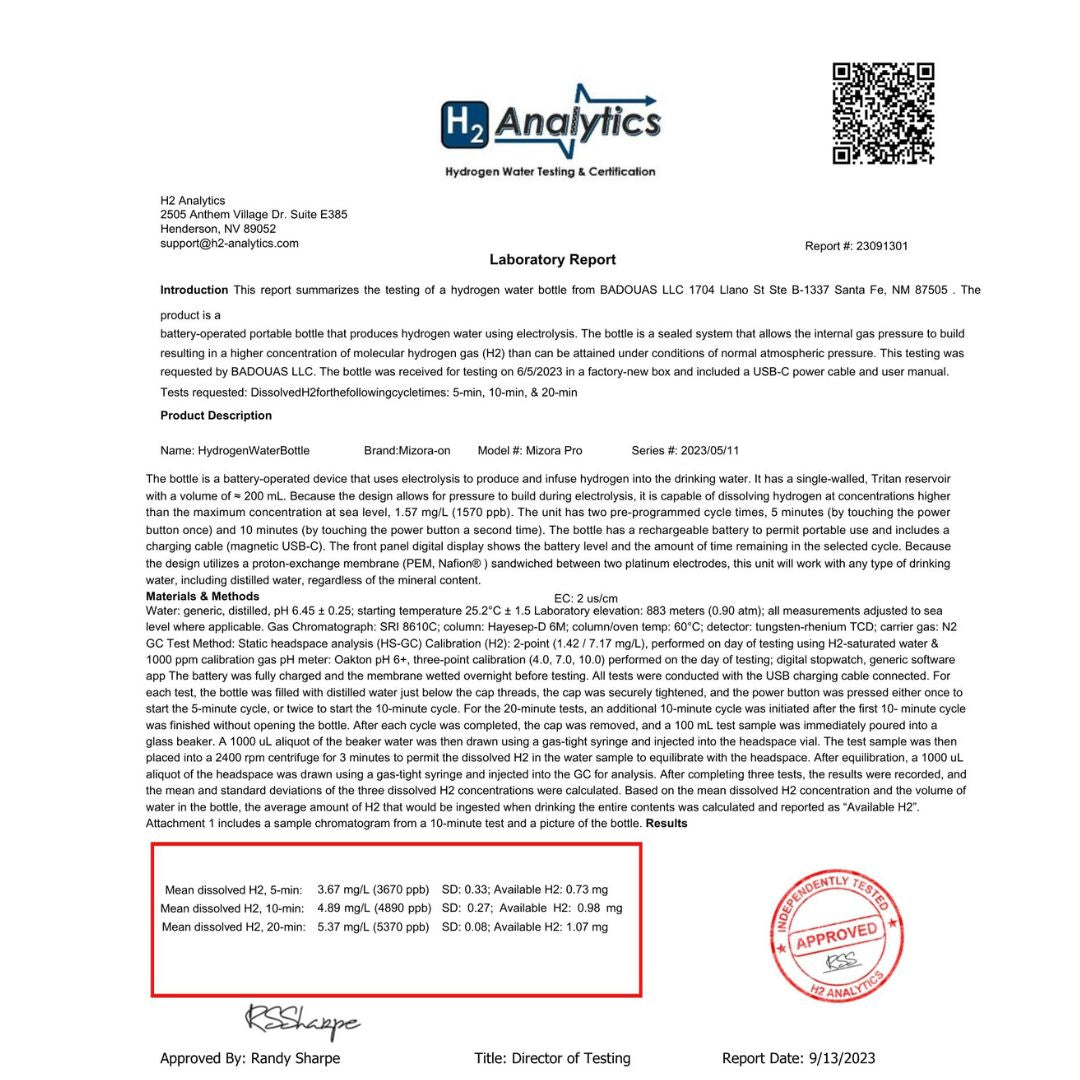 C’est une technologie certifiée par H2 Analytics (laboratoire indépendant) à 4,8 mg/L d'hydrogène. La concentration validée par les études cliniques.